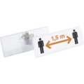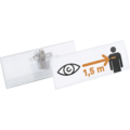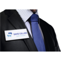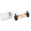 Komplett set med 3 st vita A4-etikettark för skrivarutskrift. 14 namnskyltar som kan fästas med säkerhetsnål eller klämma. Extra breda (40x105 mm) för bra läsbarhet på långt avstånd.