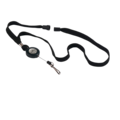 1 cm brett tubstickat nyckelband med utdragbart jojofäste med hake. Halsbandet har säkerhetslås som öppnas om man fastnar i något. Kan kombineras med t ex namnskyltar eller korthållare för passerkort.