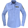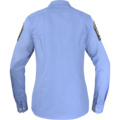 Klassisk skjorta med modern krage, lång ärm och två bröstfickor med guldknapp. Vänster bröstficka har öppning för penna. Monofonhållare på höger och vänster axel och namnhållare höger bröst. Ordningsvaktsemblem på båda ärmar och med funktionsbeteckning vänster bröst. Guldknapp på manschetten. Finns i snyggt skuren dam- och herrmodell. Den blå färgen är godkänd NCS 2142-R83B enligt Polisens FAP 670-1 (PMFS 2017_12).