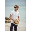 T-shirt i rymlig passform och bästa kvalitet, i förkrympt kammad bomull, och ringspunnet garn. Dubbel krage med elastan, bandad från axel till axel, rundstickad med tvånålssöm (ej 3XL-6XL).