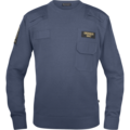 Klassisk natotröja med ribbstickad rund hals, ärmslut och nederkant. Bröstficka med lock och pennficka på vänster arm. Förstärkta axelparti och armbågar. Monofonhållare på höger och vänster axel. Namnhållare höger bröst. Ordningsvaktsemblem på båda ärmar. Funktionsbeteckning vänster bröst. Den blå färgen är godkänd NCS 7015-R90B enligt Polisens FAP 670-1 (PMFS 2017_12).
