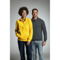 Sweatshirt i unisexstorlekar med borstad insida och ståkrage i normal passform. Dragkedja i kragen och två infällda fickor fram. Dekorationssömmar i overlock som ligger ton i ton. 2x2 ribb i ärmslut samt nederkant.