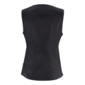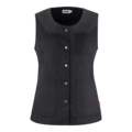 Damväst med något insväng i midjan, slitsar i nederkant och tryckknappar i framkant.