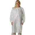 Knälång besöksrock i non-woven (fiberduk). Tillverkad av mjuk, stark nonwoven (fiberduk) i polypropylen. Knäppning med tryckknappar fram.