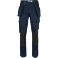 Hantverksbyxa i slitstark bomull med Cordura®stretch över rumpa och knä. Hängfickor med Cordura®förstärkt insida, varav den ena med dragkedja. Hängfickorna går att ta av genom att sprätta en kontrastfärgad, dold tråd. Benfickor, på vänster sida med plats för verktyg och penna, även en mobilficka med magnetlås och fäste för ID-kortshållare. På höger sida tumstocks- och verktygsficka med knivknapp. Fästen för verktygshållare. Förböjda knän. Knäskyddsfickor som går att reglera i två höjder, öppning inifrån. Knäna är förstärkta med Cordura®stretch för maximal hållbarhet och rörelsefrihet. Reflexdetalj/piping bak på vaden.