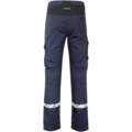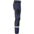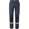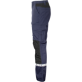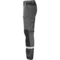 Servicebyxa med öppna sid- och bakfickor. Benfickor, på vänster sida en rymlig ficka med lock och magnetstängning, en invändig mobilficka och ett fäste för ID-kort. På höger sida ficka för tumstock och ficka för verktyg med knivfäste. Förböjda knän, stretchtyg i grenen och insydd stretchpanel i midjan för ökad komfort. Bredare bälteshälla baktill för att förhindra tryck från bälte. Dold midjeknapp. I den inre vänstra sidosömmen finns en tvättchippsficka.