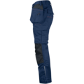 Lättskött polyester/bomull som håller färg och form. Hölsterfickor med extra fack och extra ficka med blixtlås. Bakfickor med lock och kardborrestängning. Benficka med extra fack och lock med kardborrestängning. Tumstocksficka med knivhållare. Förstärkning i hölsterfickor och på knäskyddsfickor. C42-64 kan förlängas med 5 cm genom ett utvik i benslutet.