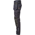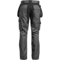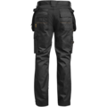 Lättskött polyester/bomull som håller färg och form. Stretchpaneler på bakstycket, för ökad rörlighet. Rymliga framfickor. Avtagbara, förstärkta hölsterfickor med zip-in funktion vilket gör att byxan kan dubblera som servicebyxa, med förstärkning och extra fack och extra ficka med blixtlås. Bakfickor med lock. Benficka med extra fack och ficklock med kardborrestängning. Tumstocksficka med knivhållare. Förstärkning på knäskyddsfickor och med två höjdnivåer för knäskydd. Byxbenet kan förlängas med 5 cm genom ett utvik i benslutet. Tvättas i 60 grader (vit tvättas 40 grader).