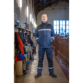Arbetsjacka med dragkedja upp till kragen framtill, dragkedjan är täckt för att undvika att smuts tränger in, försluts med kardborre. Sidfickor, samt generösa bröstfickor på båda sidor, samtliga fickor försluts med dragkedja. På vänster sida finns ett fäste för ID-kort. Justerbara ärmslut med kardborre, även justerbar vidd i sidorna med kardborre. I den inre vänstra sidosömmen finns en tvättchipficka.
