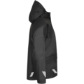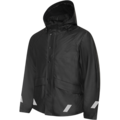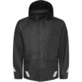 Regnjacka med tryckknappar samt dragkedja framtill. Sydda och svetsade sömmar. Reglerbara ärmslut med tryckknappar. Reglerbar huva. Re?exdetalj i nederkant av jackan på fram- och baksida, även på ärmarna.