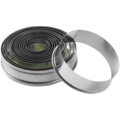 Bakelsering i 14 delar med slät kant från Hendi. Setet innehåller ringar i olika storlekar, från Ø 1,9 cm till Ø 11,2 cm, tillverkade av rostfritt stål för hållbarhet och enkel rengöring. Perfekt för att skapa jämna bakelser och desserter.