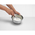 Stapelbar rostfri Bunke från Brabantia med mått på insidan gör det lätt att blanda ingredienserna. Skålen har en mjukt böjd kant med silikonbas som förhindrar glidning.