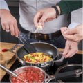 Slickepott stål från Rösle med slitstarkt silikon som tål temperaturer från -30°C till +230°C samt fetter och oljor. Silikonbladets böjliga sida anpassar sig efter skålens form.