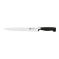 Filékniv 26 cm ur serien Four Star från Zwilling. Filékniven är tillverkad av ett enda stålstycke för optimalt blad och ren skärkant. Det rostfria specialformelstålet ger en balanserad blandning av krom och kolelement. FRIODUR®-bladet är extra korrosionsbeständigt och behåller skärpan med flexibilitet genom speciell ishärdning. Kniven är sömlös med ett svart plasthandtag för bekväm hantering. Stödet mellan bladet och handtaget ger en jämn övergång och balans för enkel och ren skivning av skinka, samtidigt som det fungerar som fingerskydd.