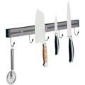 Magnetlist för knivar i svart färg från APS. Magnetlisten är tillverkad i polypropylen , har två stycken magnetlister och krokar. Listen är lämpad att fästas på väggen i ett restaurangkök.