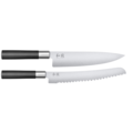 Knivset i 2 delar ur serien Wasabi från KAI. Setet innehåller en kockkniv på 120 cm och en brödkniv på 23 cm. Kockkniven är utmärkt till att skära kött och grönsaker, brödkniven änvänds bäst till att skära bröd och vetekransar. Bladen är tillverkat i rostfritt stål av hög kolhalt 1K6, och har hårdhet 58 +/- 1. Handtaget är av bambupulver och polypropen, vilket är hygieniskt då bambu har naturliga anti-bakteriella egenskaper. Wasabi är en serie knivar med japansk estetik som grundar sig i Zen-buddhismen.