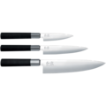Knivset med japanska knivar ur serien Wasabi från KAI. Setet innehåller en allkniv på 10 cm, en allkniv på 15 cm och en kockkniv på 20 cm.