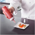 Dressingflaska 35cl med en lila kork från Araven. Droppfri dressingflaska som är idealisk för alla sorters dressingar oavsett konsistens, oljor, såser och reduktioner. Flaskan möjlliggör en ren, exakt dekoration av en maträtt. Dressingflaskan har en droppfri silikonventil. Såserna kan förvaras direkt i flaskan. Ventilen fungerar som lock.