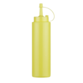 Dressingsflaska gul med lock från Frankhugo. Flaskan är tillverkad i polyethylen och passar utmärkt att fylla med ketchup, senap eller majonäs.