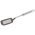 Stekspade ur serien Pro från Zwilling. Denna spade kombinerar polerat och matt rostfritt stål med mjukt silikon, vilket skapar ett unikt och attraktivt utseende. Utöver sitt estetiska värde är spaden praktisk med en rostfri stålhandled i satinfinish som är lätt att hantera och en silikondel som är skonsam mot känsliga ytor och utformad för att passa bra i runda köksredskap.