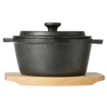 Gjutjärnsgryta 55cl i svart färg med lock och träbas Cosy & Trendy. Grytan är tillverkad i gjutjärn och basen är av trä. Setet passar perfekt att användas på restauranger där det serveras direkt ur grytan tillbords.
