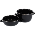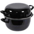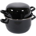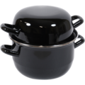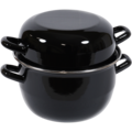 Musselgryta med lock med lock från Hendi, tillverkad i svart emalj med en flänsad fälg i rostfritt stål. Grytan är designad för tillagning och servering av musslor och är både elegant och praktisk för professionellt bruk.