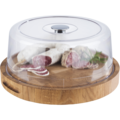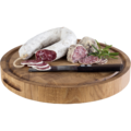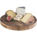 Rund Serveringsbräda av ekträ från APS. Brädan har juicespår, halkskydd och passar att användas vid olika slags bufféer.