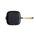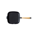 Fyrkantig Grillpanna 28x28cm i gjutjärn och handtag av bok från Carl Victor. Pannan är tillverkad för hand och är inbränd med vegetabilisk olja vilket gör att den är redo för omedelbar användning. Gjutjärnsgrytan från Carl Victor kan användas på alla typer av värmekällor inklusive öppen eld.