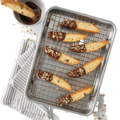 Bricka 33x24cm med ett anpassat ugnssäkert galler med non-stick. Perfekt för rostning eller stekning i ugn. Gallret fungerar också som ett svalgaller för bakverk.
