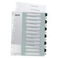 Återanvändbart och extra hållbart register i svartvit kombination. Anpassningsbart med exklusiv design av innehållsförteckning via www.leitz.com/easyprint - Skriv ut smarta och exklusivt designade innehållsförteckningar via www.leitz.com/easyprint - Starkt och hållbart med kraftig 0,30 mm PP - A4 Maxi-format ger snabb åtkomst även när det används med fickor - 12 flikar 1-12 för enkel sortering - 11-hål universalhålning
