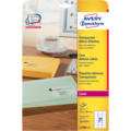 Adressetiketter 63,5x38,1 mm Transparenta etiketter från Avery blir nästan osynliga när de fästs på vita eller färgade kuvert. Lätta att lossa från arket tack vare QuickPEE. Etiketterna är lämpliga för många olika ändamål, tex. som adressetiketter. Tillförlitlig permanent vidhäftning på alla släta ytor. För inomhusbruk