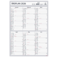 Väggkalender Årsplan 2026 med ett halvår per uppslag. Innehåll: Kyrkliga helgdagar, flaggdagar, helgdagar, månfaser, namnsdagar, årsplan/årsplaner, anteckningssidor.