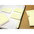 Gula notis-lappar 50x40mm med 100 ark per block. FSC-certifierad papper för hållbarhet. Idealisk för kontor, skolor eller hemmet.