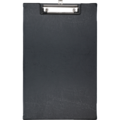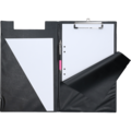 Dubbel skrivplatta av plastöverdragen papp för A4-format. Ficka på inre framsidan och kraftig klämma i överkant.