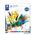 STAEDTLER® 8500 Akrylfärg. Högpigmenterade, lysande färger. Lätt att blanda och blanda med slät konsistens. Perfekt för konst och hantverk. Rengör lätt med vatten. 12 ml (0,4 fl. oz) färgtuber. Kartong innehållande 24 akrylfärger i olika färger.