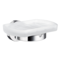 En hållare med tvålkopp i frostat glas och en elegant polerad kromfärg ger badrummet en stilren och funktionell touch. Den har en dold fastsättning för en ren och enhetlig look. Dessutom är tvålkoppen löstagbar för enkel rengöring.