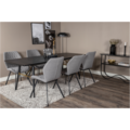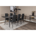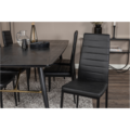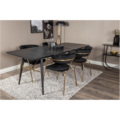 GOLD, vårt omtyckta matbord med lyxig design och trendiga detaljer i mässing. Bordsskivan i svart kulör är tillverkad av MDF och har en diskret trä-look. Bordsbenen är modernt utsvängda i svart metall och skapar ett stadigt blickfång. Matbordet är förlängningsbart och passar därför utmärkt både till mindre och större sällskap!