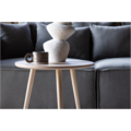 Askim är ett sidobordet från serien Vind och är lika stilsäkert som praktiskt med sin Skandinaviska design och enkla utformning. Sidobordet tillhör Vind kollektionen och har en rund bordsskiva i vitputsad MDF med faner och tre utsvängda ben i samma material. Det levande materialet ger rörelse till bordsskivan och skapar en iögonfallande finish. Placera intill soffgruppen, sängen eller solitär för praktisk avställningsyta.