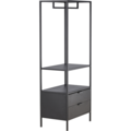 Svart klädhängare i nordisk design. Här kan du njuta av fördelen med dold förvaring med två rymliga lådor i botten. Det finns också ett lågt hyllplan som är som skräddarsytt för dina skor och vikta jeans. Genomgående tillverkat i kvalitativt svart stål.