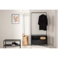 Vår svarta klädhängare i stål från serien Quito är det perfekta komplementet till dina kläder och skor. Även utformad med smart förvaringsplats. Med en innovativ låda i botten kan du vika ner det du önskar förvara dolt. Ovanpå lådan finns två öppna fack som ger dig möjlighet att visa upp dina favoritskor eller snyggt hopvikta jeans.
