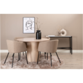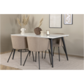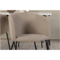 Karmstol Berit är en modern stol och har en helklädd design med lätt rundad rygg och sits i polyesterlinne och smala ben i svart järn – garanterat lika bekväm som iögonfallande. Lättare montering krävs. Möblera inbjudande och trivsamt och njut av härliga måltider!