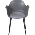 COMFORT har en avkopplande design med generöst sittdjup! Tillverkad av slitstarkt och praktiskt material är rygg och sits med integrerade armstöd i helgjuten plast. Benen är i pulverlackerad metall. Inklusive en grå tunn sittdyna för extra komfort. Lättare montering krävs.