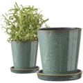Krukan från Bitz är av stengods med tillhörande fat. Krukan har en färgad glasyr på utsidan och en matt insida. Plantera örter eller en fin blomma som blir en fin detalj.