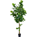 Fiolfikus konstväxt i svart kruka med gröna stora blad, står vackert och dekorativt vid fönster, på kontor, reception och hotellrum för en skön atmosfär.