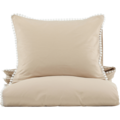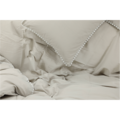 LIVIA är ett påslakanset som både är härligt och inbjudande i en jordnära kulörer! Påslakansetet är tillverkat i bomullssatin för en mjuk och sval känsla mot kroppen, och med sin dekoriativa kant i spets kan du enkelt skapa en härlig känsla med det där lilla extra till din inredning. För att skapa en ännu mer lyxig upplevelse i sovrummet vid bäddning kan du vika täckets översta del över kanten på överkastet så att de dekorativa volangerna exponeras, detta skapar genast en lyxig hotellkänsla!