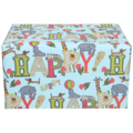 Presentpapper Happy Turkosblå är ett papper med turkosblå bakgrund och med texten "Happy" tillsammans med djurmotiv. Komplettera med liknande färger på presentbandet för att få fina inslagningar av gåvor och presenter som passar till de yngre.