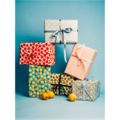 Presentpapper Agnes med vit bakgrund och små romantiska blommor i härliga pastellfärger som motiv. Pryd paketet med färgglada presentsnören för somriga paketinslagningar av gåvor och presenter.
