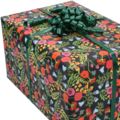 Presentpapper Ester är ett blommigt presentpapper med mörk bakgrund. Matcha presntpappret med färgglada presentsnören för en effektfull inslagning.