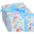 Presentpapper Partytime har fina motiv som ballonger, paket och tårtor inspirerat av kalastema. Passar för många presentinslagningar som till barnkalas, födelsedagspresenter för vuxna, babyshower och i butiker.
