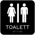 Skylt Taktil Toalett Svart 150x150mm
